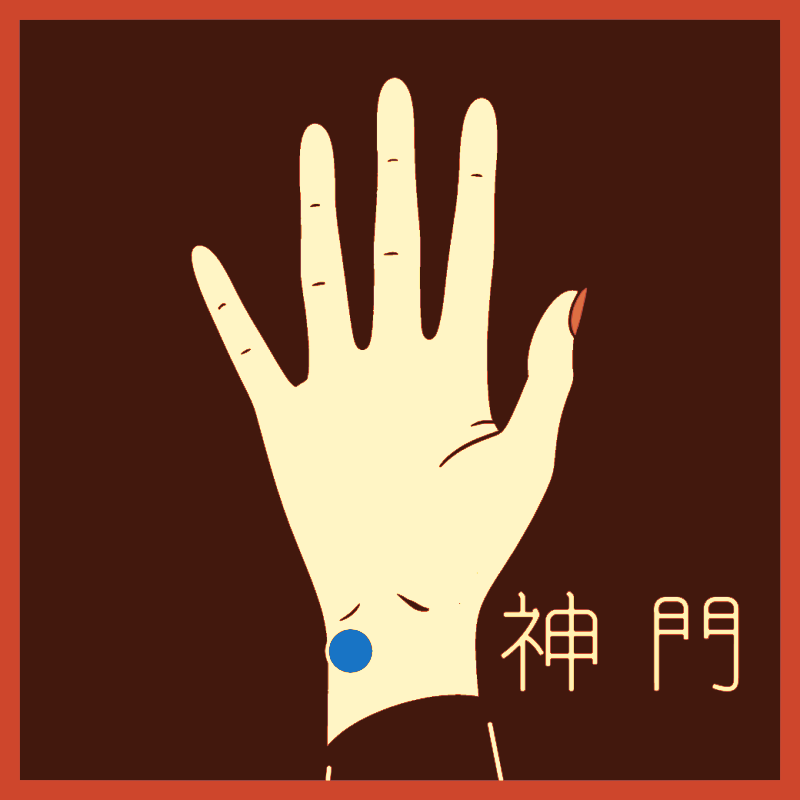 不安、動悸、緊張感など「心のざわつき」に関連が深いツボで、自律神経の中でも特に「心」とつながる働きが意識されています。