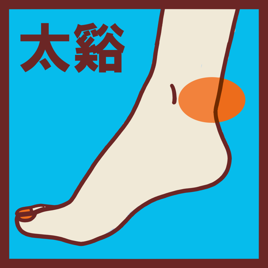また、内くるぶしとアキレス腱の間にある「太谿(たいけい)」というツボは、足腰の冷えや痛みを和らげます。