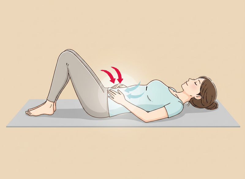 ポイントは、「お腹だけ」でも「胸だけ」でもなく、「お腹+肋骨」がふわっと広がること。