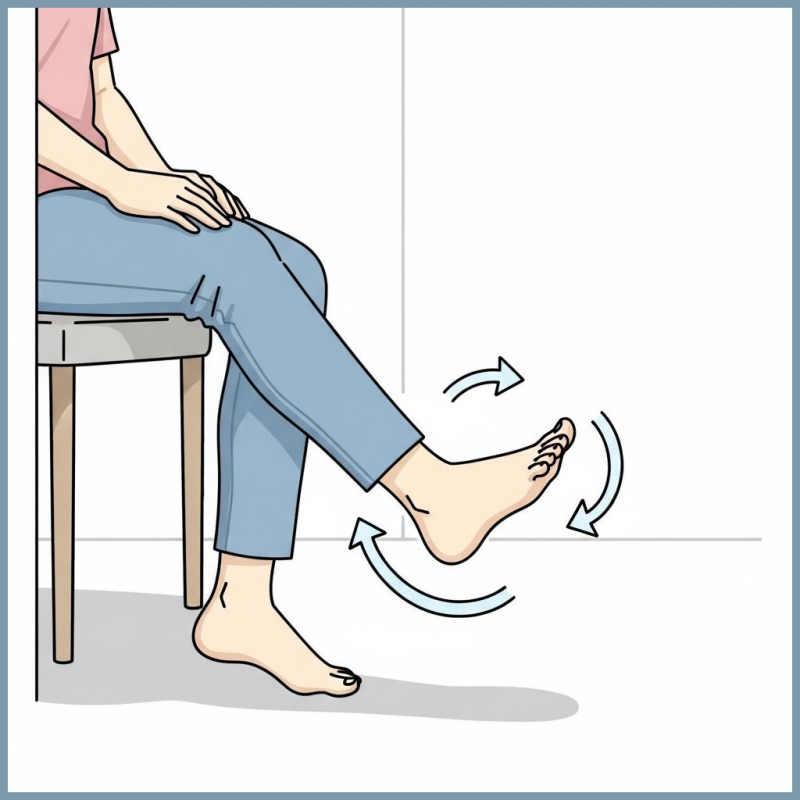 2. 片足を少し浮かせ、足首をゆっくり大きく回す。